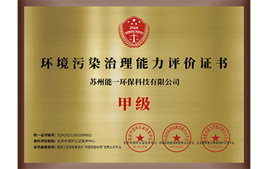 2025 年,能一环保凭借卓越的环境污染治理技术与综合实力,申请获得环境污染治理能力甲级证书。此证彰显其在空气污染控制、粉尘废气治理等领域的专业资质技术水平,标志着企业治理能力达到行业优先标准。