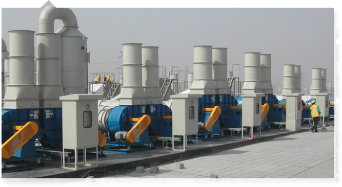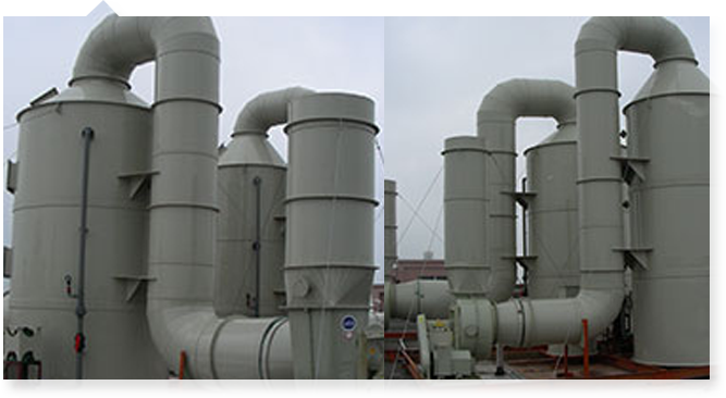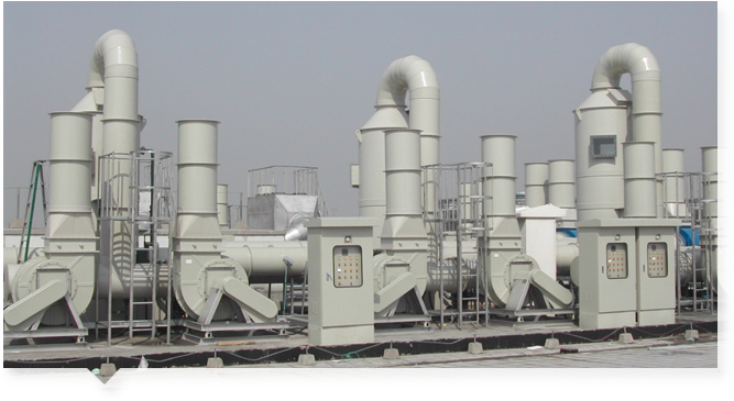 塔体的上部是除雾段,气体中所夹带的吸收液雾滴在这里被去除下来,经过处理后的洁净空气从净化塔上端排气管放入大气。